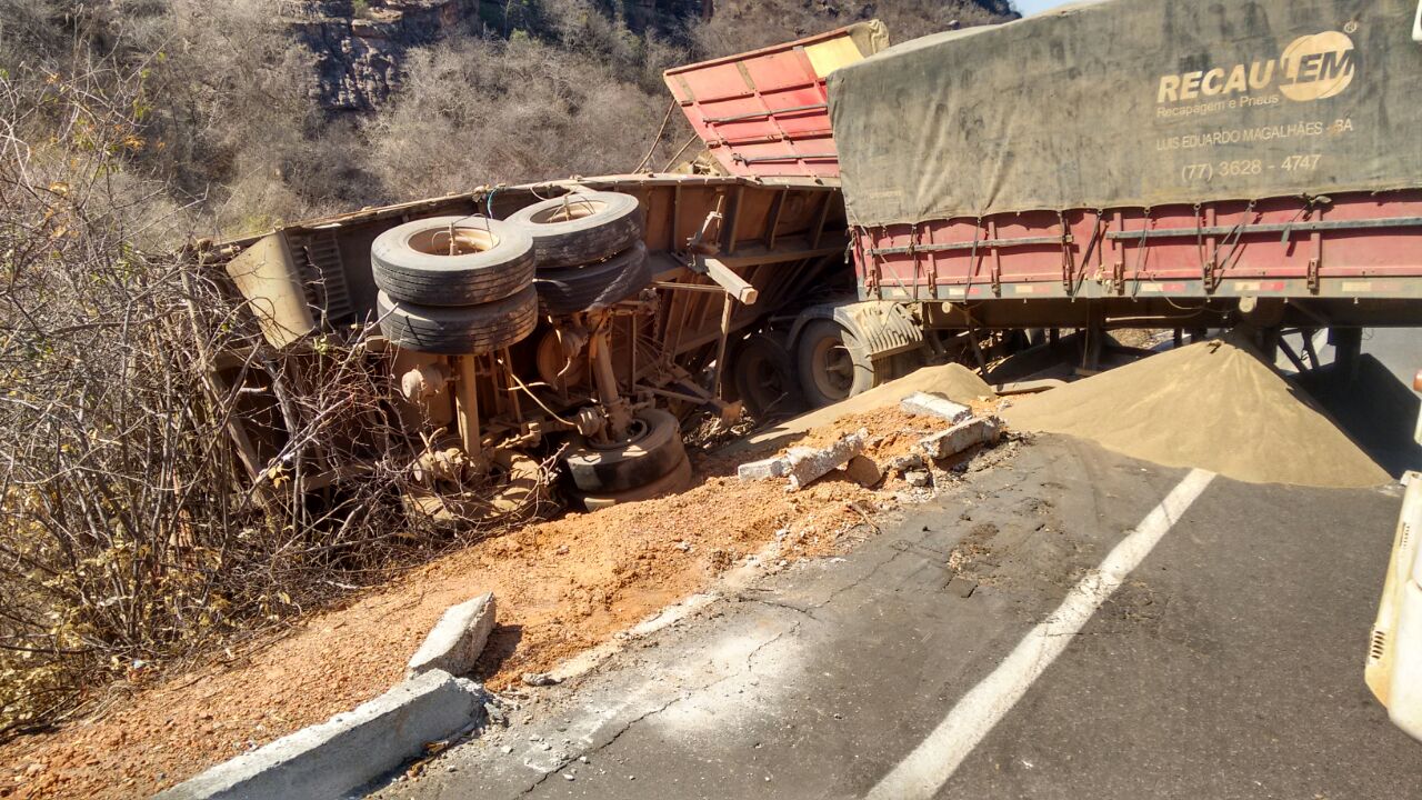 Motorista perde o controle e carreta cai no “corte da serra”