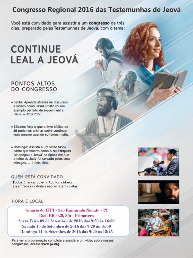 Será realizado em São Raimundo Nonato um congresso das testemunhas de Jeová nos dias 9, 10 e 11 de setembro,vai…