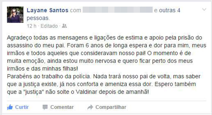 Filha do dono da Casa do Camarão desabafa sobre prisão de suspeito de matar empresário