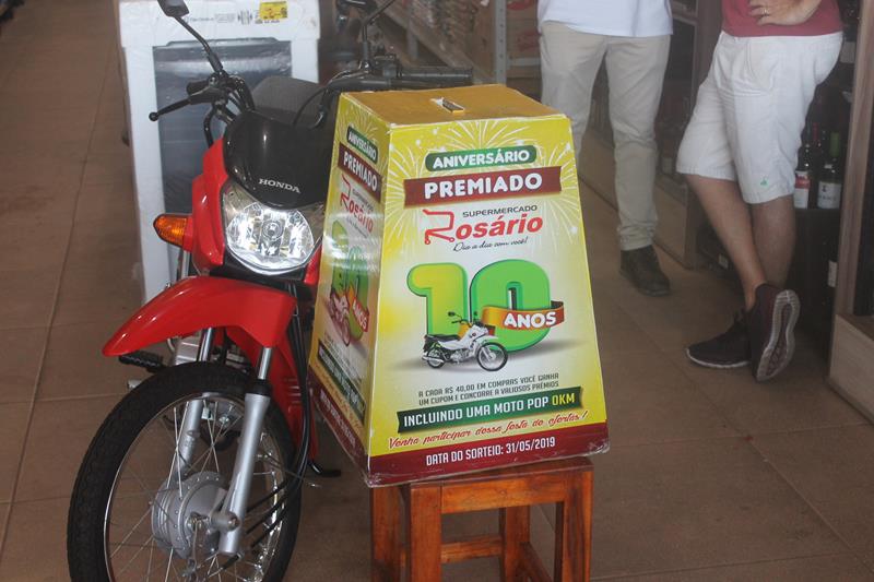 O Supermercado Rosário completou 10 anos nessa última sexta-feira (31/05) e realizou um super sorteio em São Raimundo Nonato. Entre os vários prêmios sorteados para os clientes estava uma moto Pop 0km.